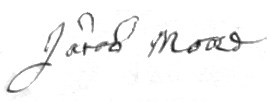 Lastly all the risedue viz houses Lands good & Chattels I give and bequeath unto my Sone Joshua Moore whome I apointe my Sole Executer of this my Laste Will and tistament revoking all othirs I Declair this to be my Laste Will and Testament. Witeness my hand and Seal this 16 Day of august in the year 1748