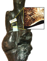Back view of the Věstonice Venus with marked area of the fingerprint and the fingerprint in detail. Reproduced from Figure 4 in Kralik.